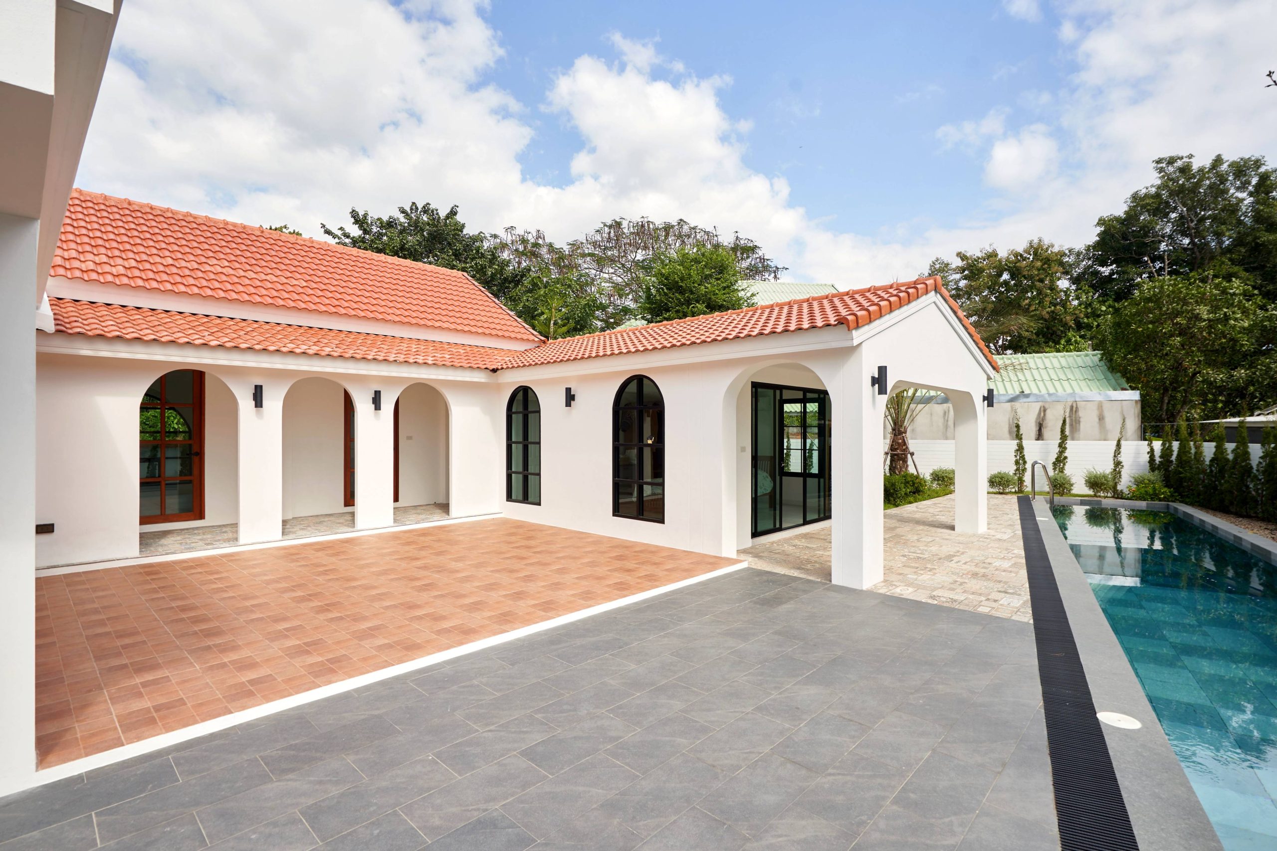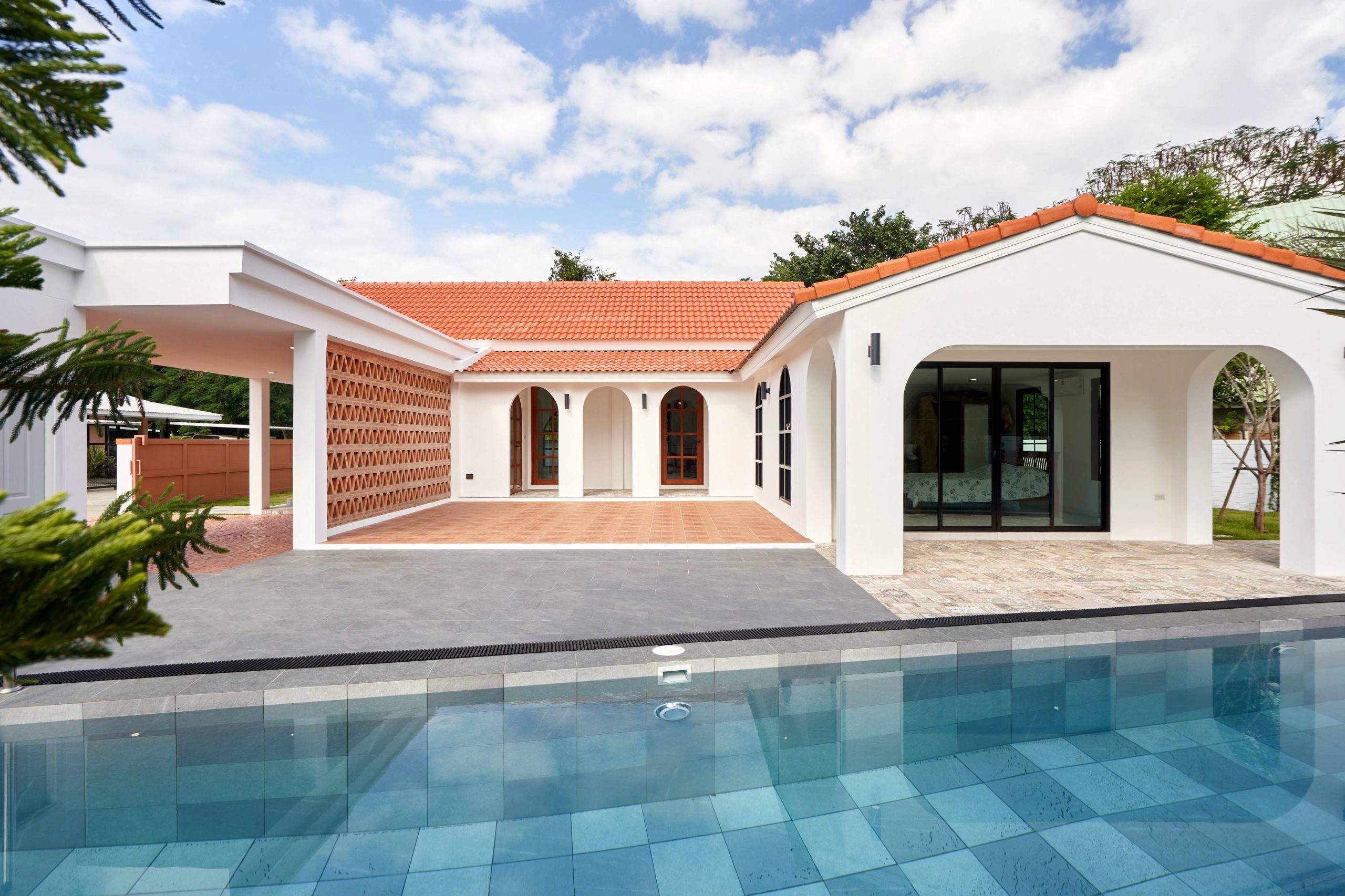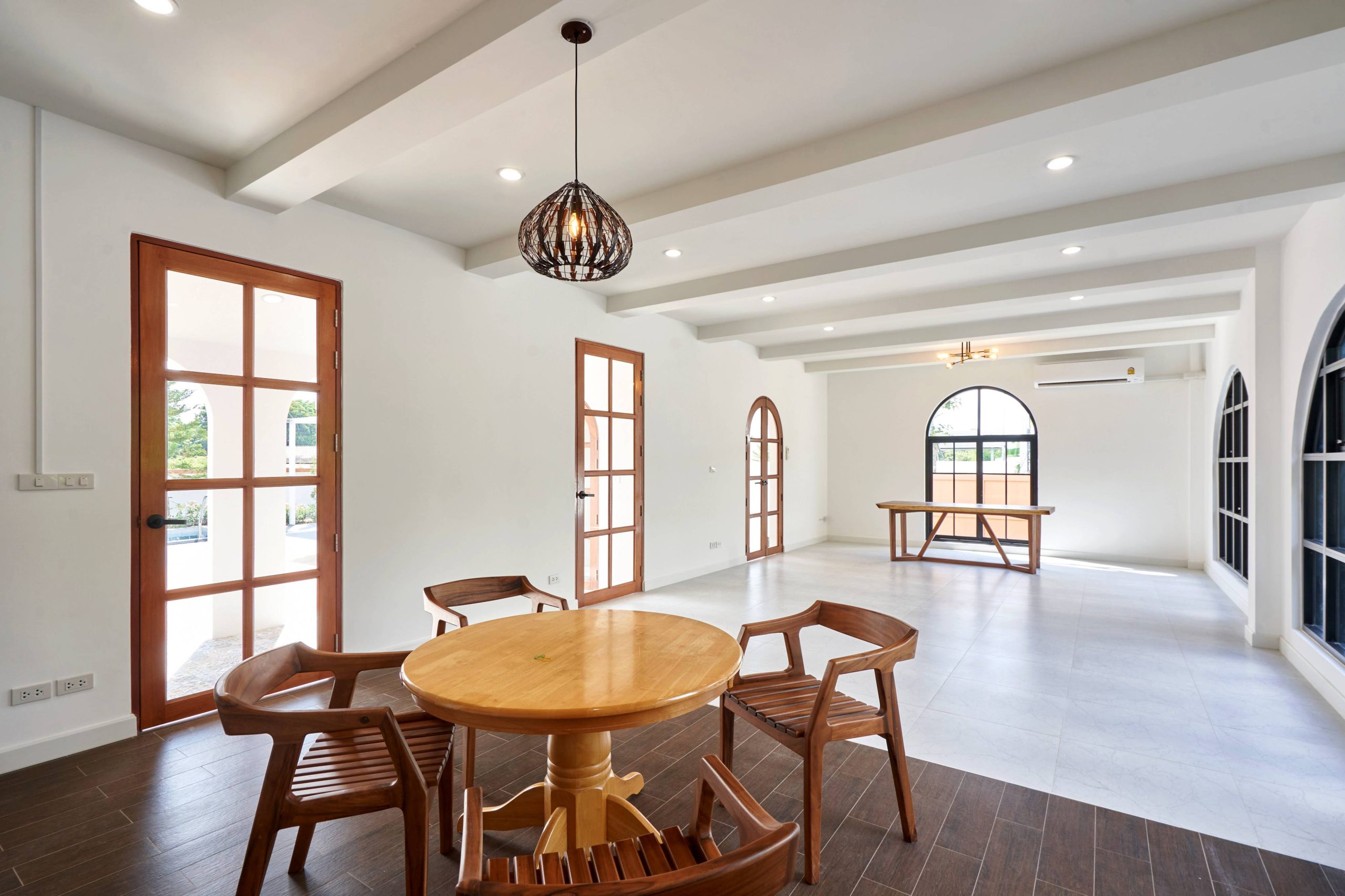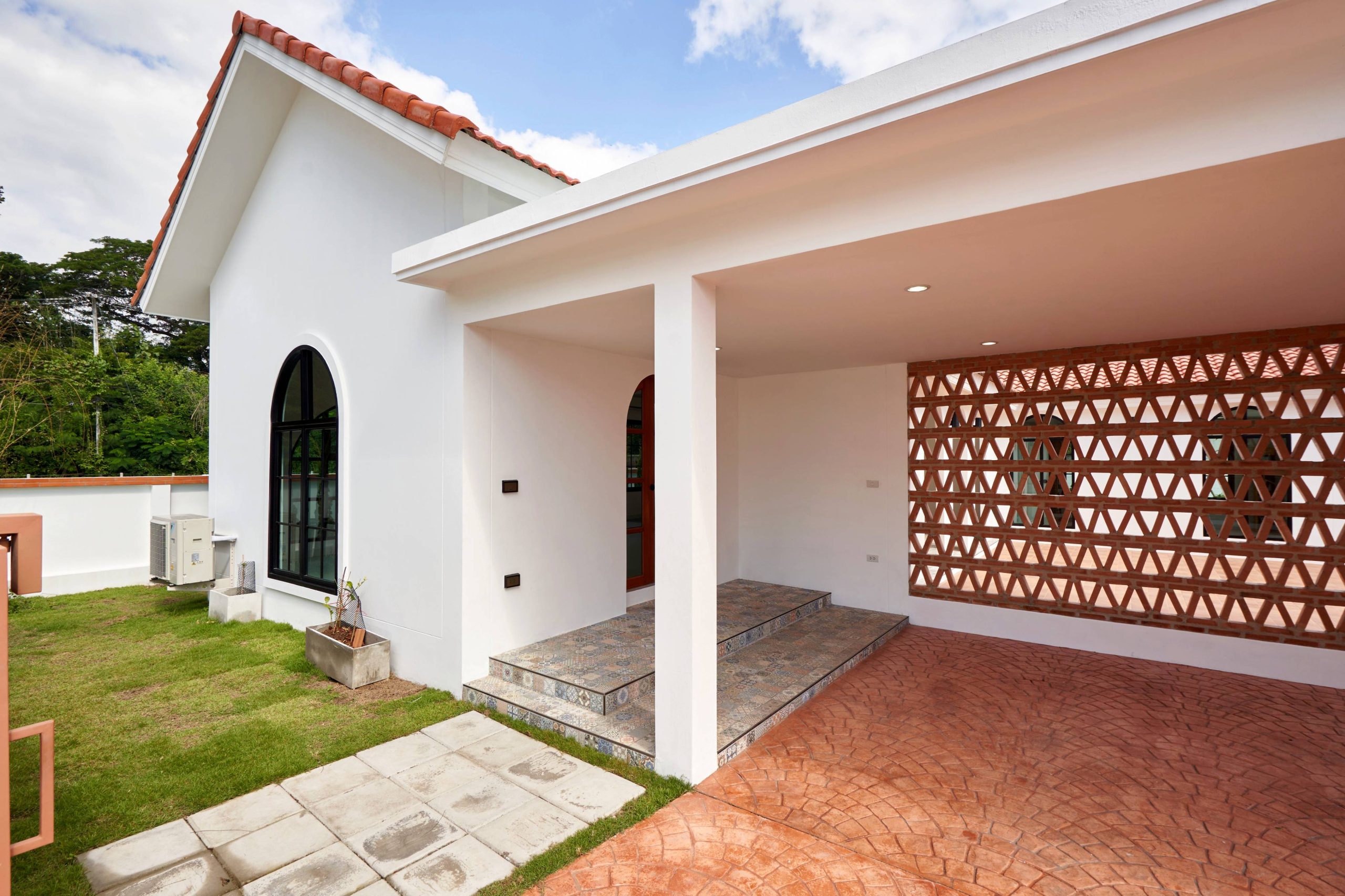 home style Modern Mediterranean In Hang Dong District, Chiang Mai Province, which combines minimalist simplicity with a resort on the Mediterranean coast. It is a design that looks warm, bright and gives a feeling of relaxing in a vacation home.