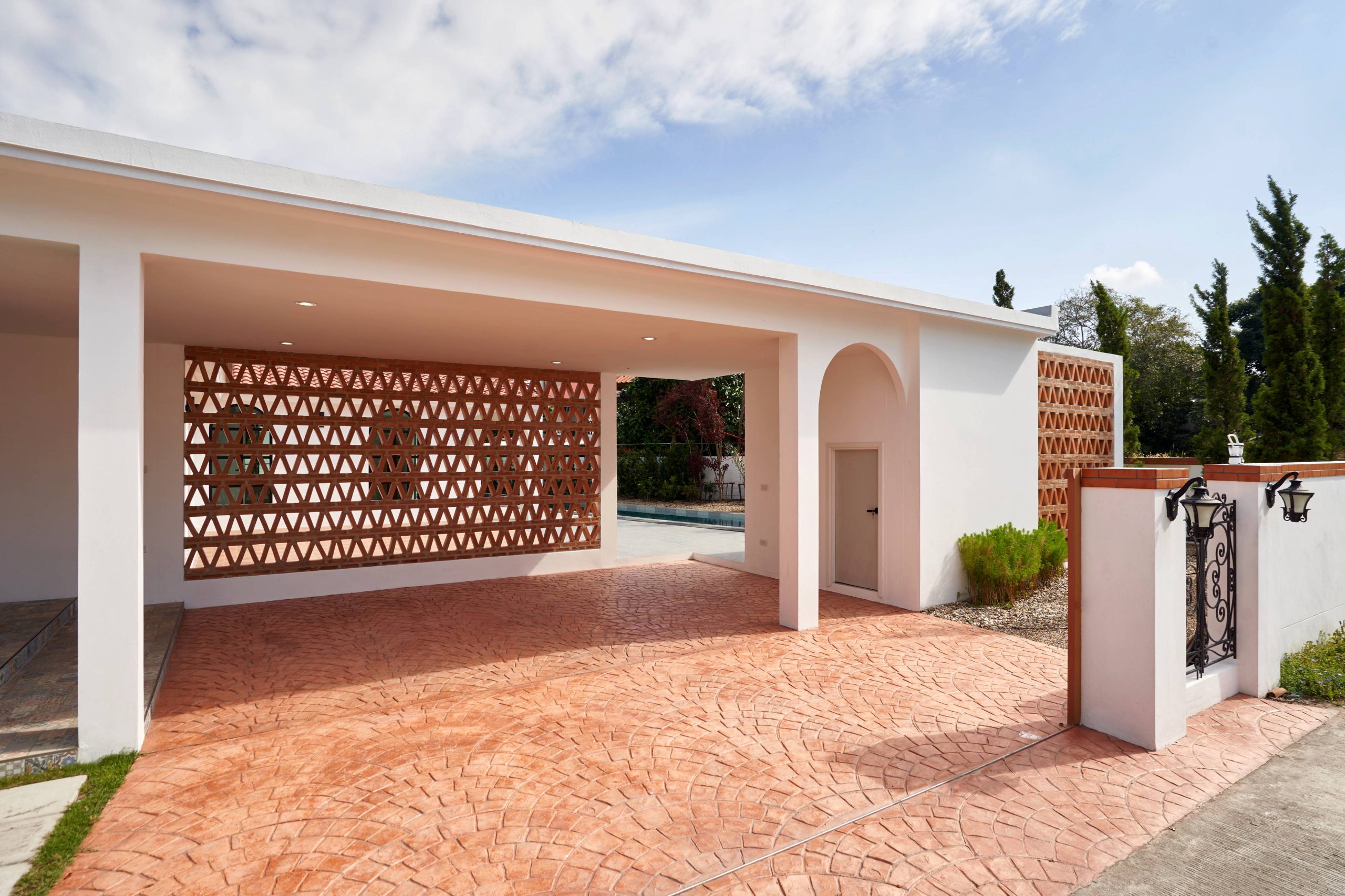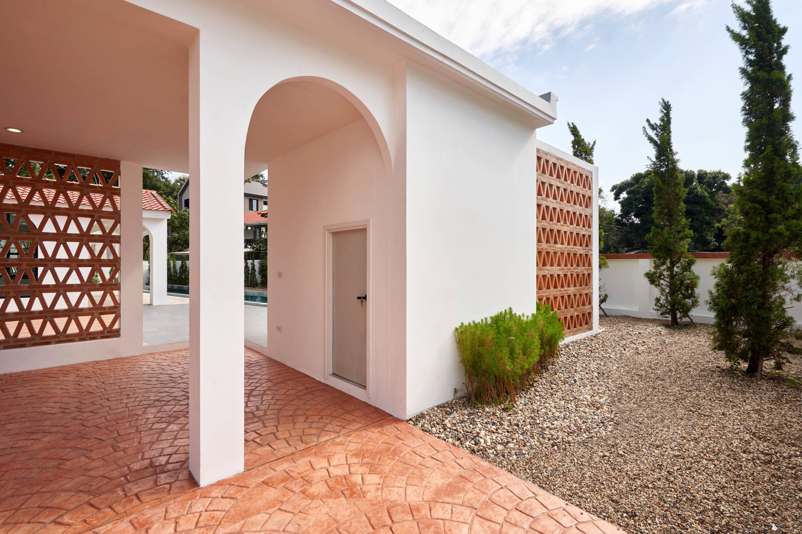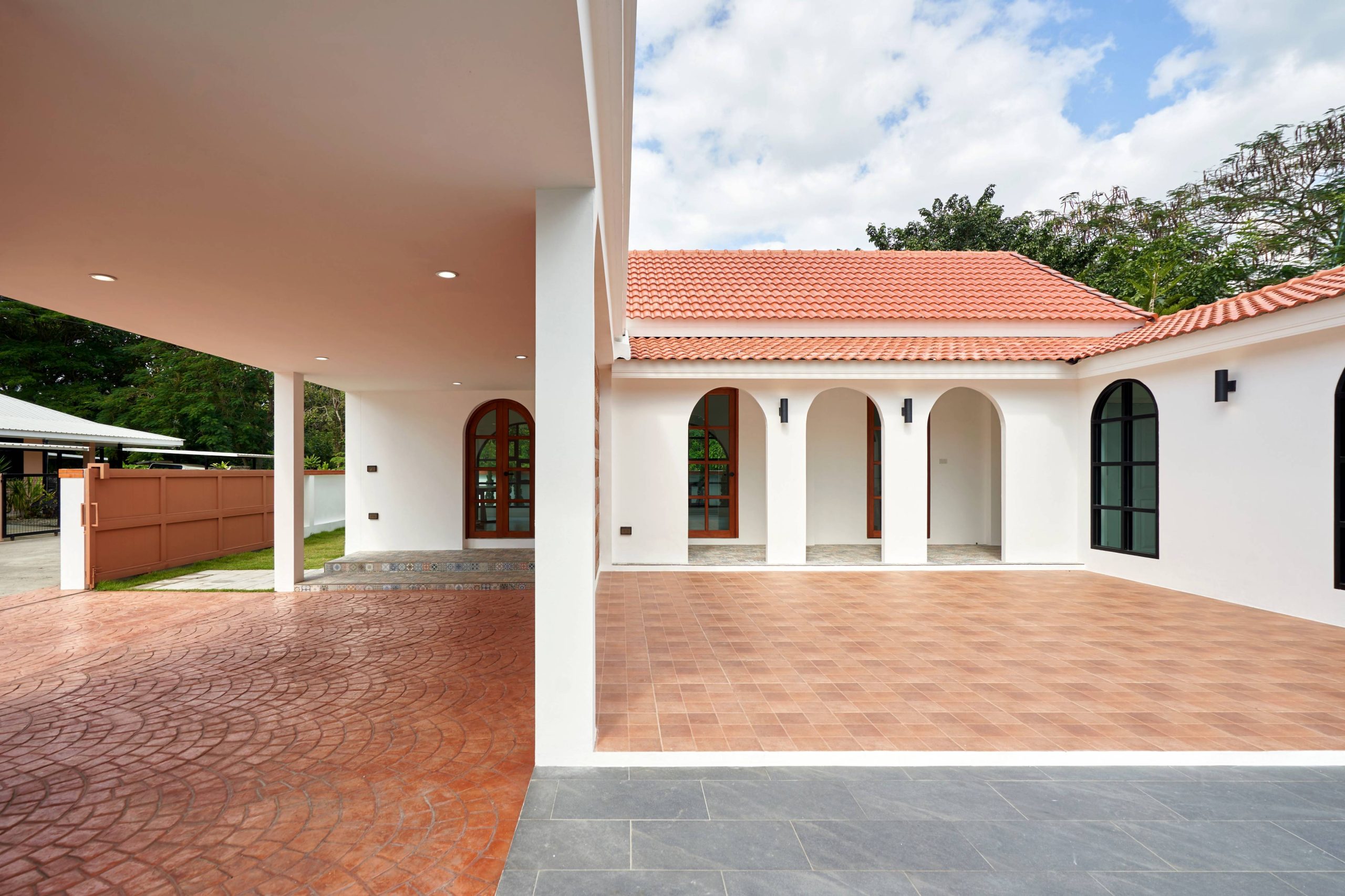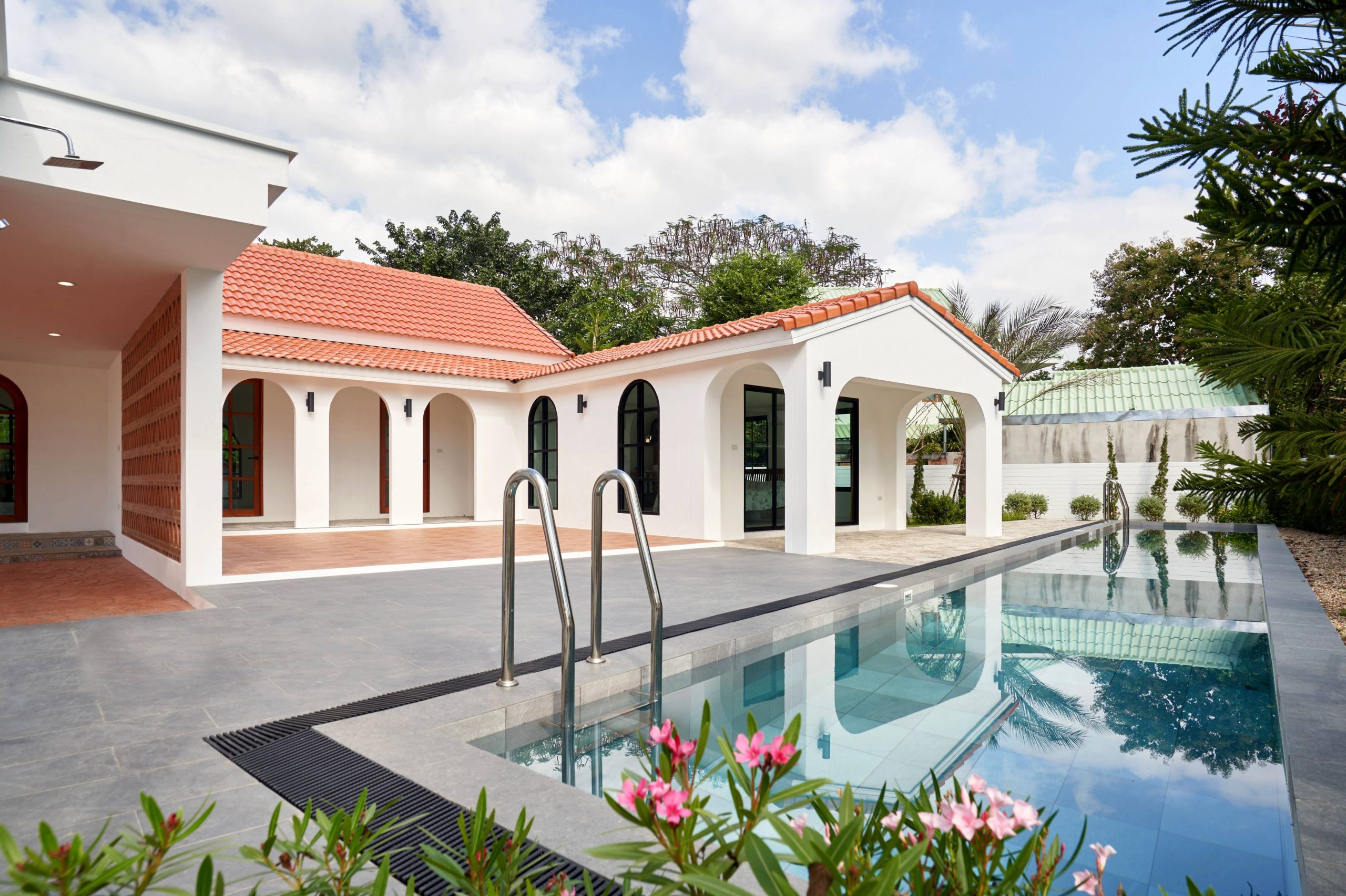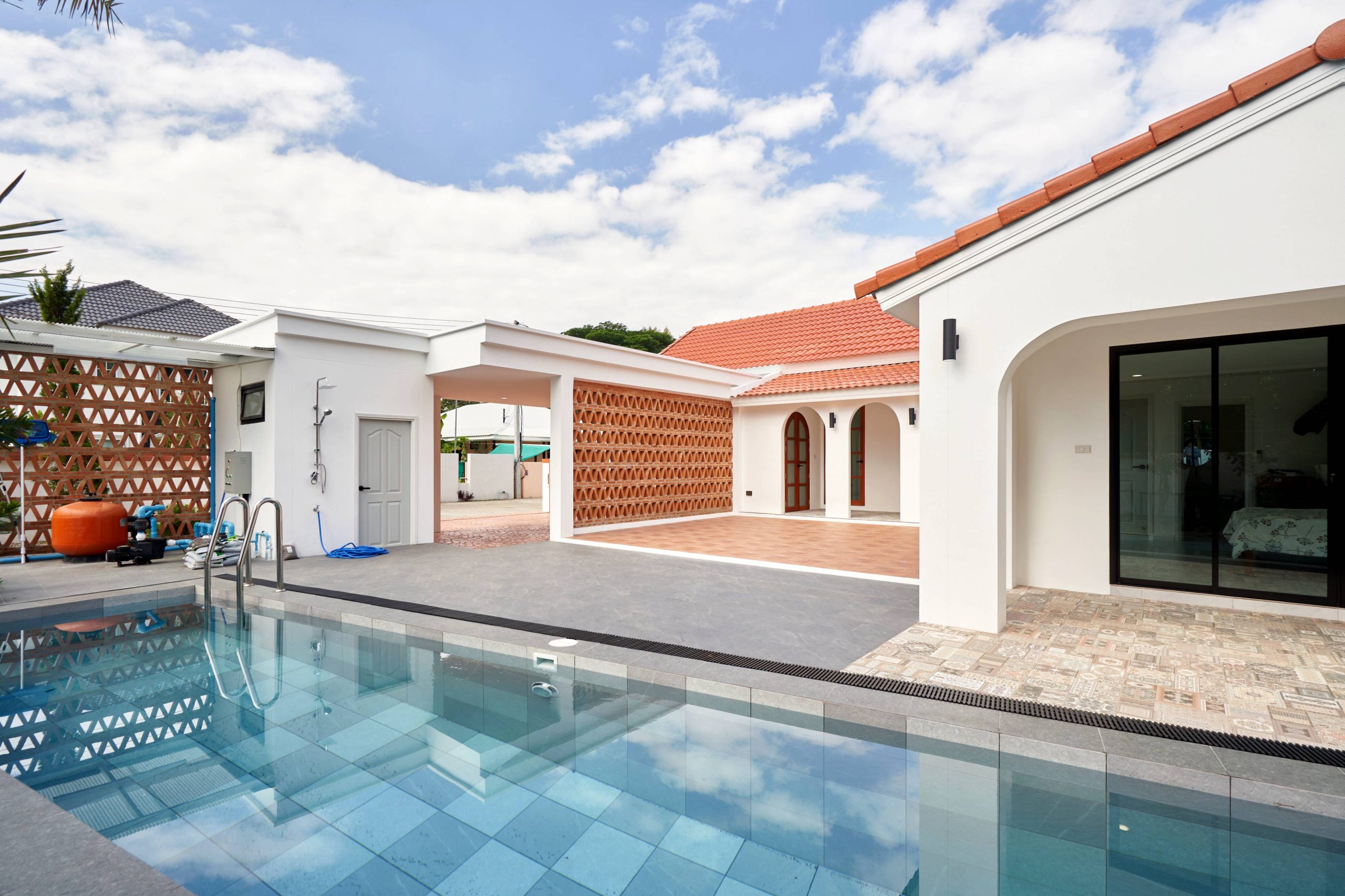 home style Modern Mediterranean In Hang Dong District, Chiang Mai Province, which combines minimalist simplicity with a resort on the Mediterranean coast. It is a design that looks warm, bright and gives a feeling of relaxing in a vacation home.