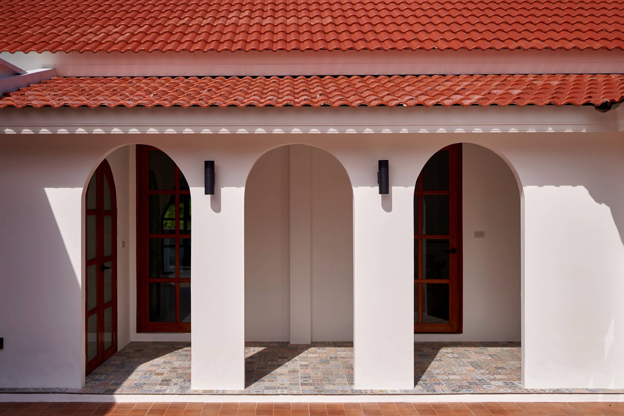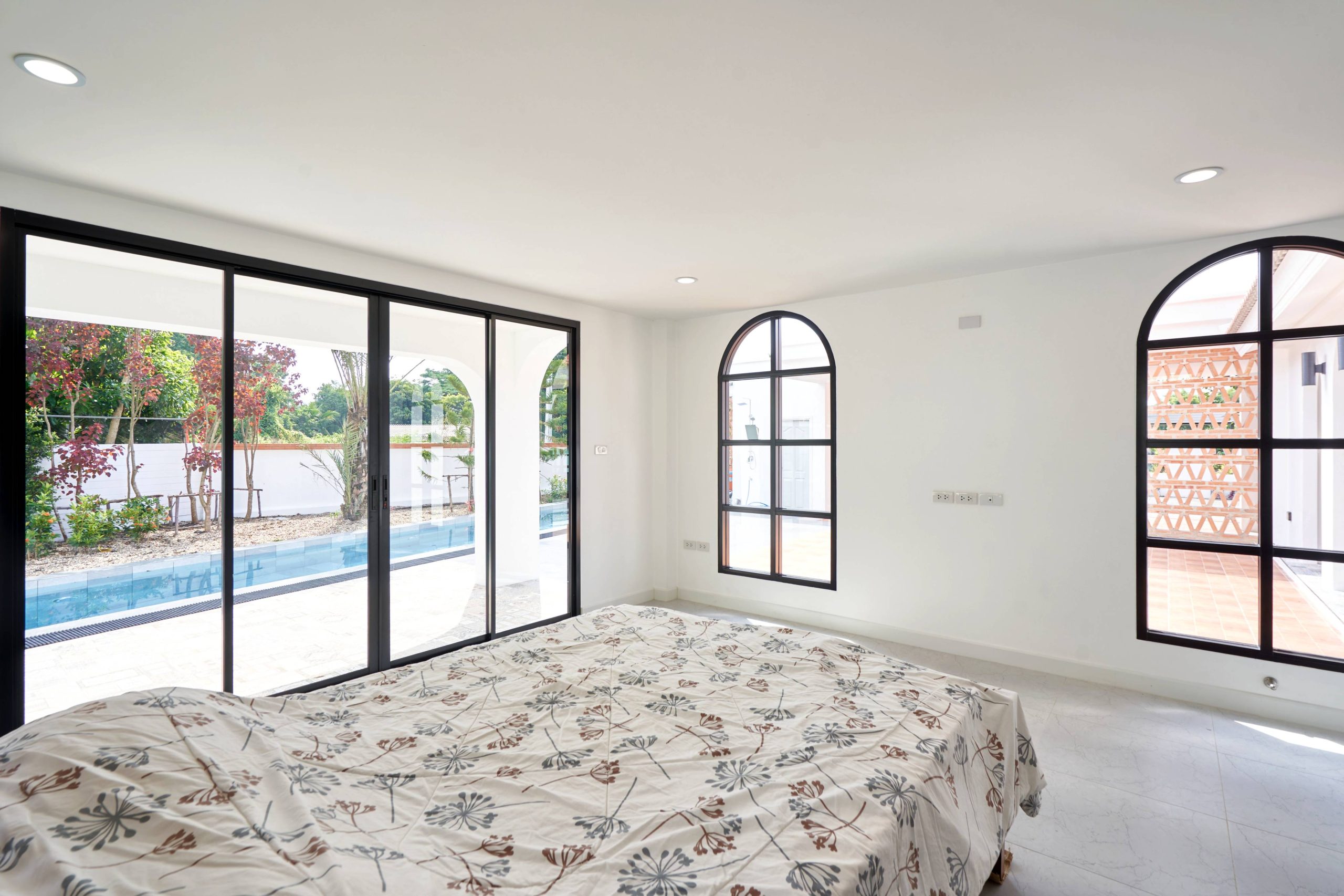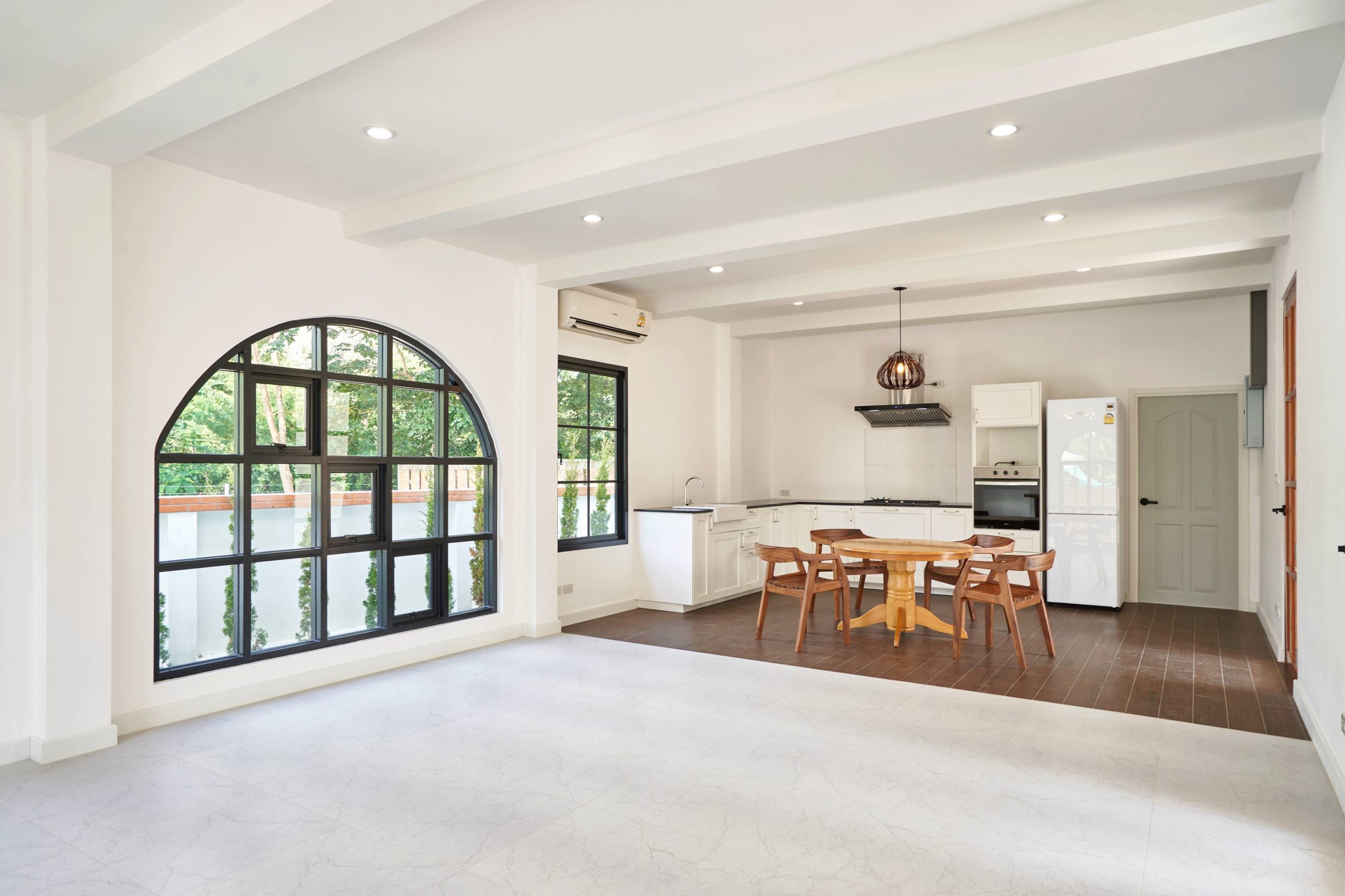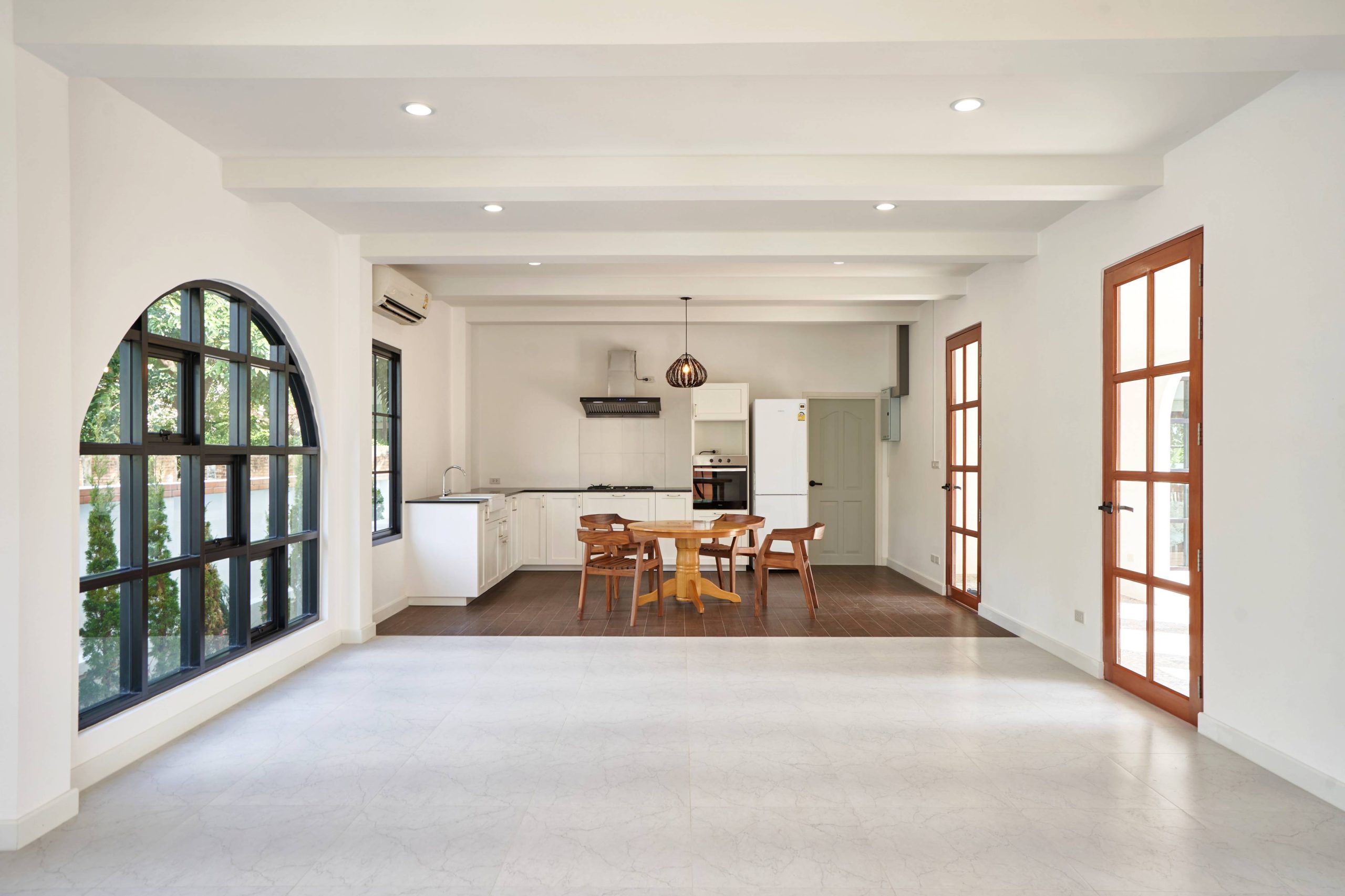 home style Modern Mediterranean In Hang Dong District, Chiang Mai Province, which combines minimalist simplicity with a resort on the Mediterranean coast. It is a design that looks warm, bright and gives a feeling of relaxing in a vacation home.
