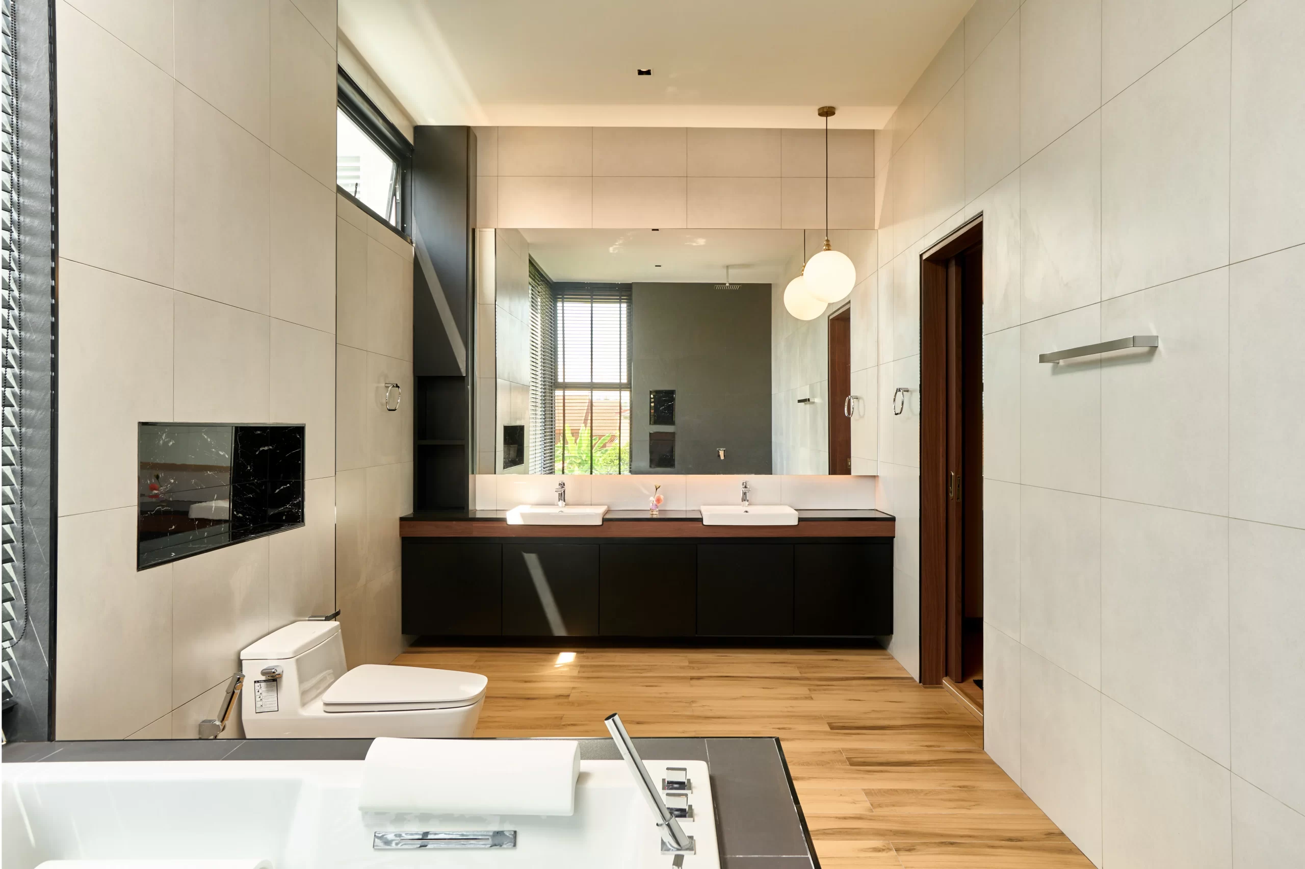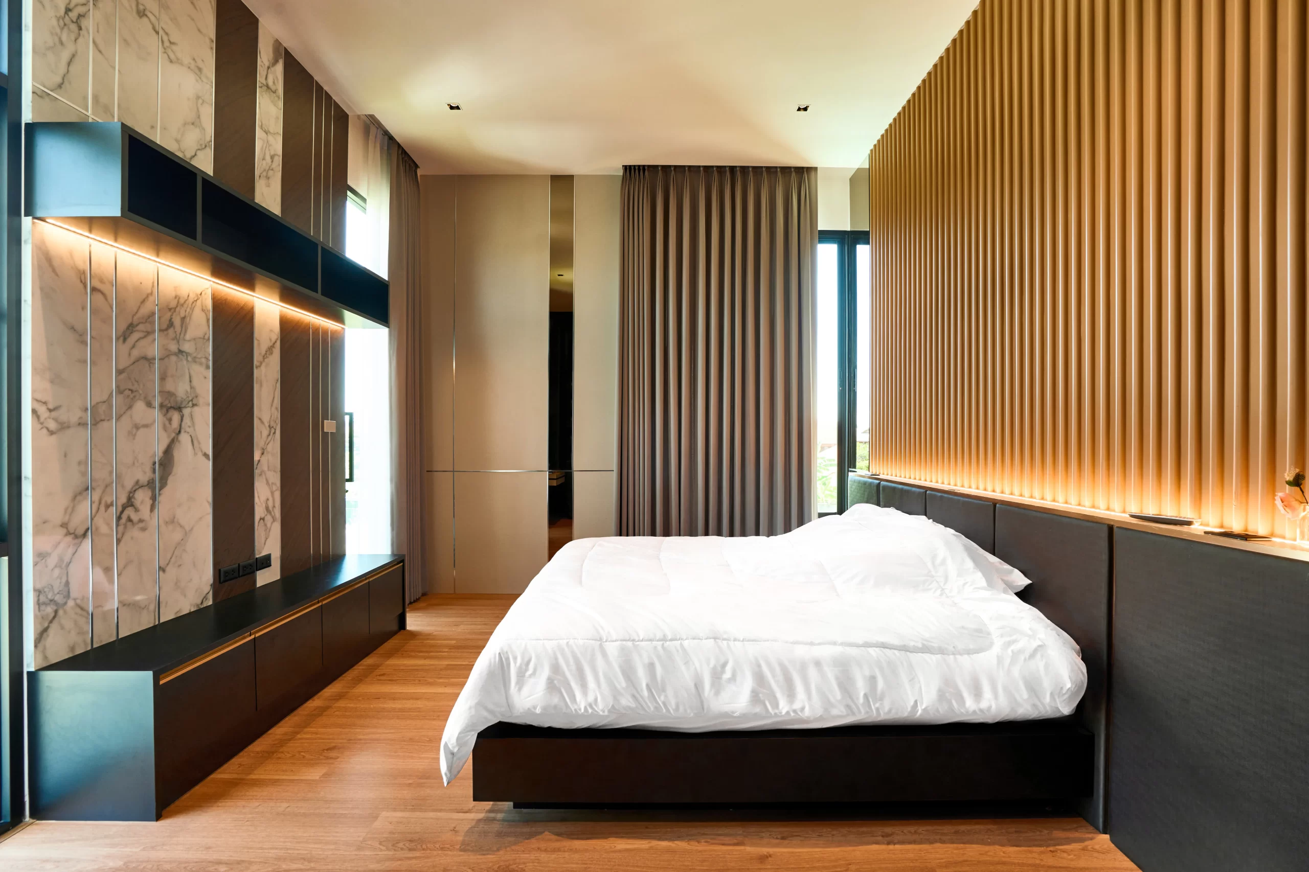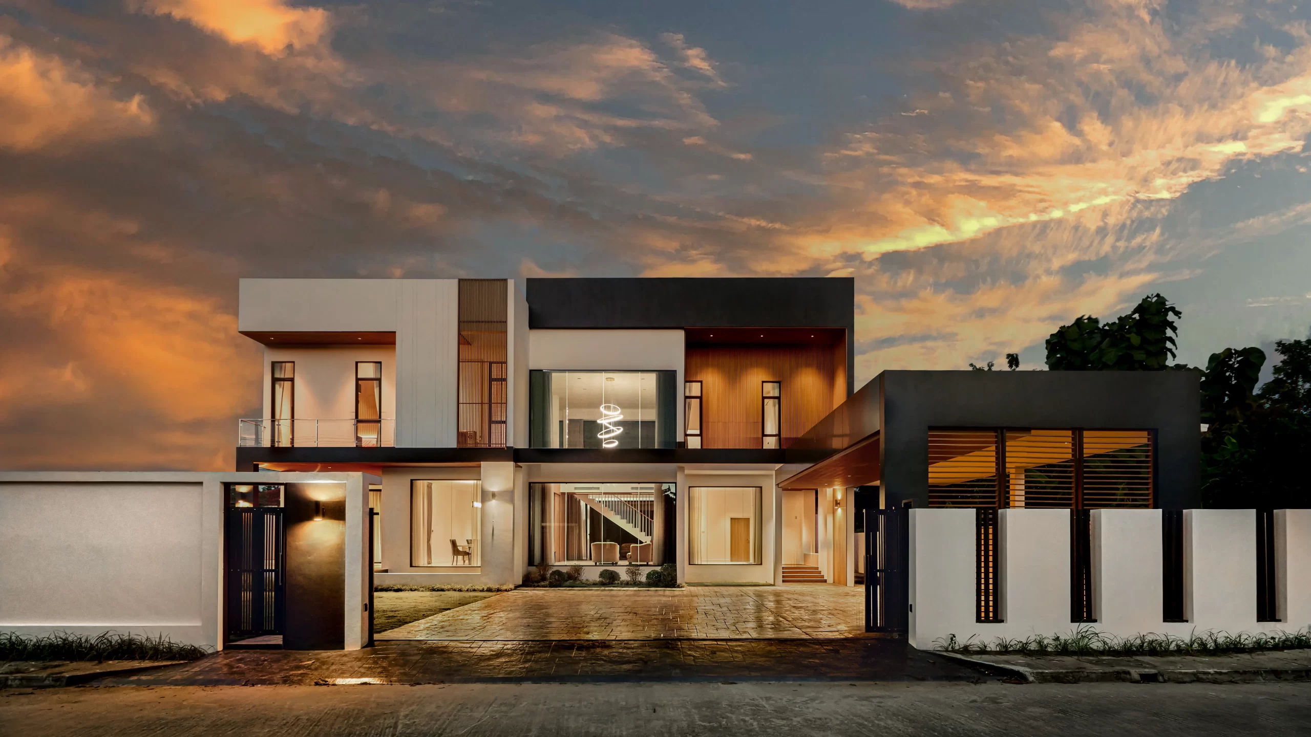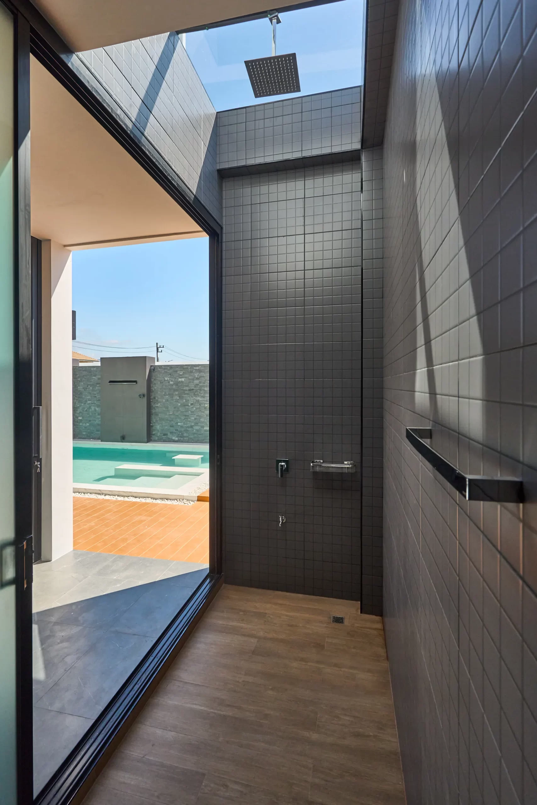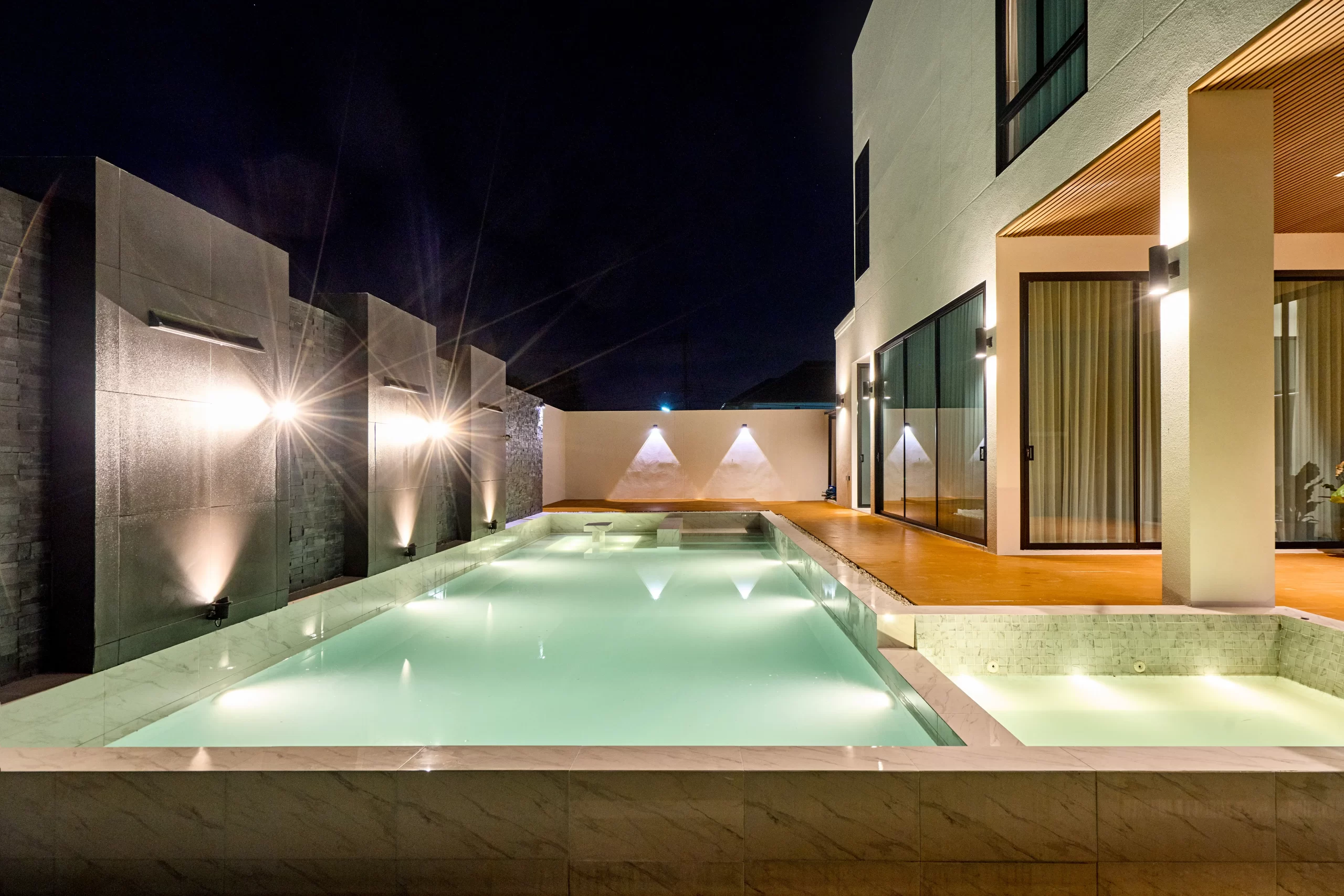 Modern Pool House, Chiang Mai Province The latter stands out with a design that emphasizes modern luxury. but still airy and complete functionality Private swimming pool connected to the relaxation area Answer the real privacy and relaxation.