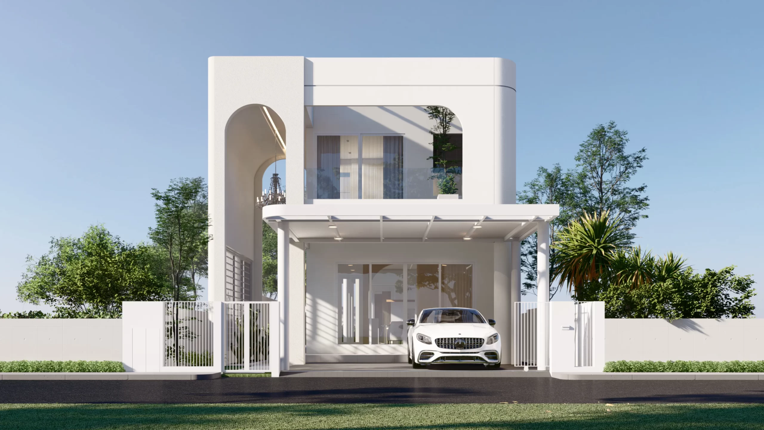 บ้านสไตล์ Modern Luxury ในโครงการเวิลด์คลับแลนด์ อ.หางดง จ.เชียงใหม่ ที่ออกแบบมาเพื่อลูกค้าที่รักความเรียบง่ายแต่ยังคงความหรูหรา โดดเด่นด้วยดีไซน์ส่วนโค้งอันเป็นเอกลักษณ์ และการจัดวาง Space ที่เชื่อมต่อความสุขจากภายในสู่ภายนอกด้วยสระว่ายน้ำส่วนตัว